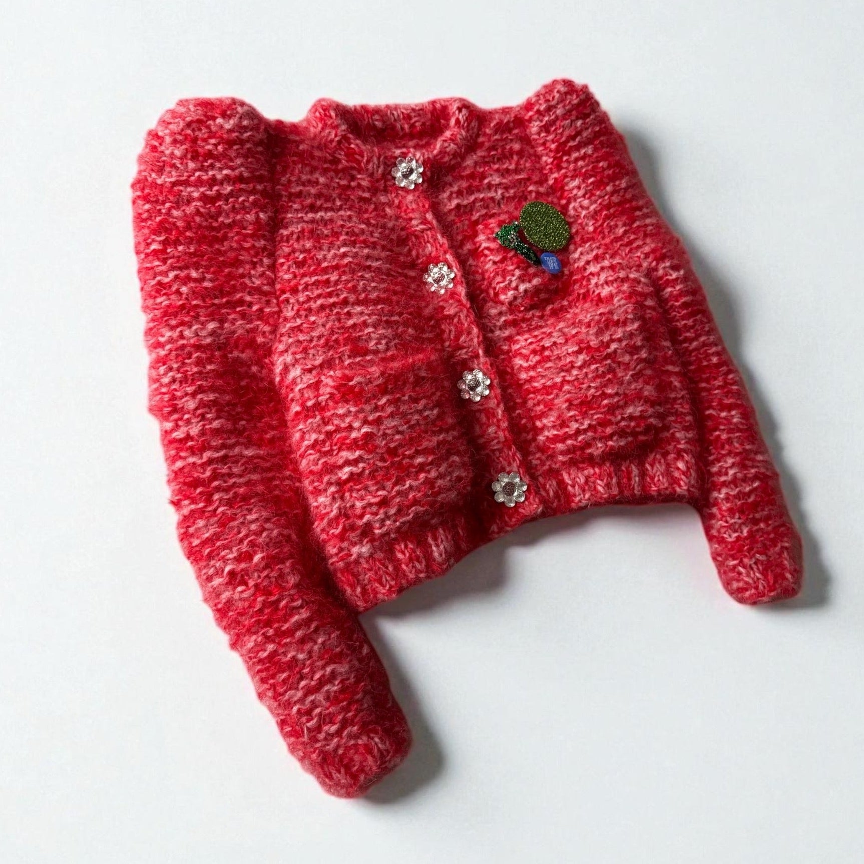 Crafted from beautiful mohair, alpaca and silk mix yarn, and features sparkly flower buttons.